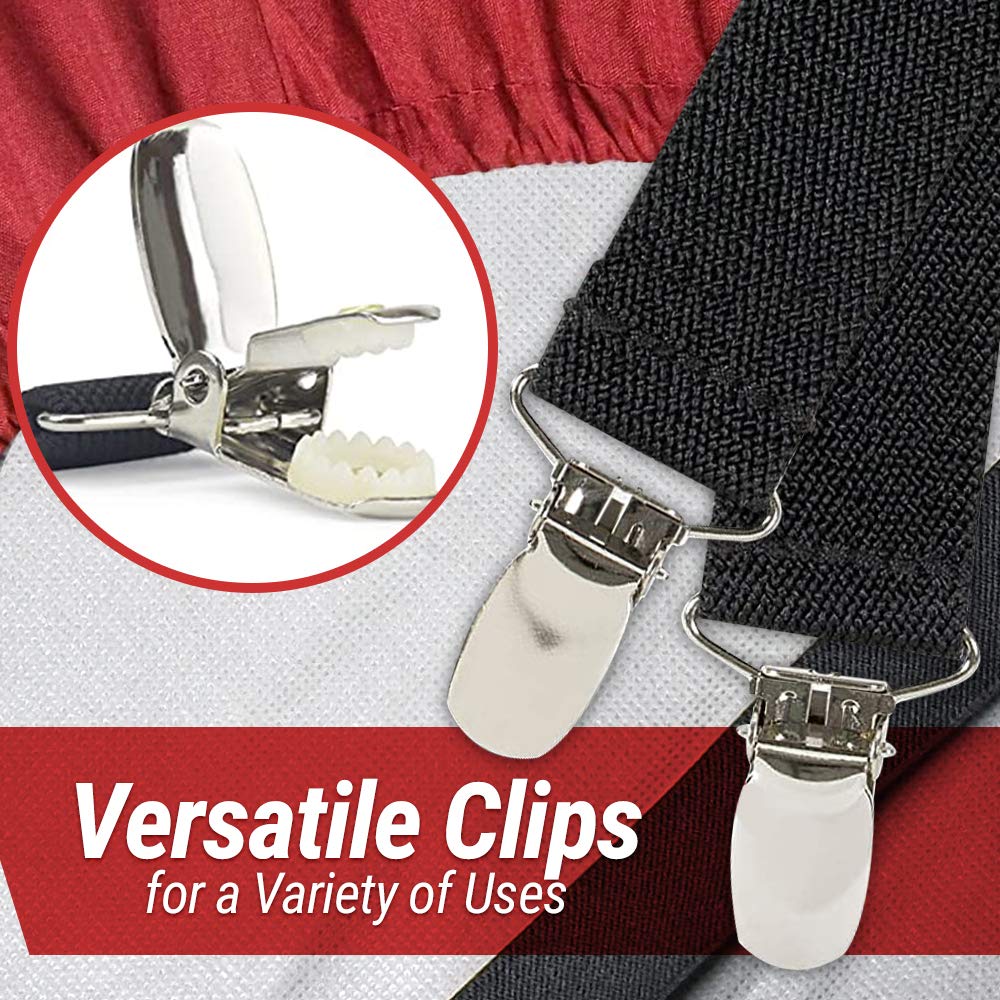 - ULT RA-SOFT ELASTIC: These Bed Sheet Fastener Suspenders are crafted of 100% woven polyester that will retain its elasticity use after use, outfitted with a metal clip on each end to provide the perfect blend of comfort and durability.