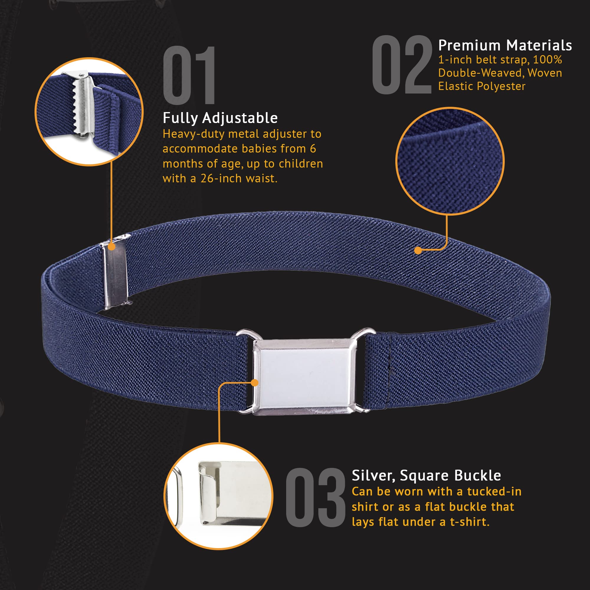 - HIGH-QUALITY CONSTRUCTION: This 1-inch wide belt is expertly crafted of 100% woven elastic polyester to provide the perfect combination of comfort and durability. Not only is it soft against your child’s skin, but it won’t stretch out over time either.