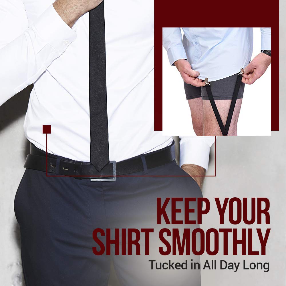 - ADJUSTABLE DESIGN: Outfitted with adjustable clamps, the shirt stays are designed to ensure a perfect fit for any height while assuring your shirt is comfortably tucked to give you the perfect, tucked look all day long.
