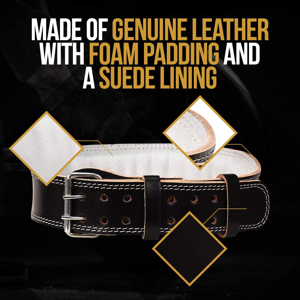 - HIGH-QUALITY CONSTRUCTION: Expertly crafted of 100% genuine leather with interior foam padding and a suede lining, this lifting belt provides the perfect blend of comfort, durability and support for all of your exercising needs.