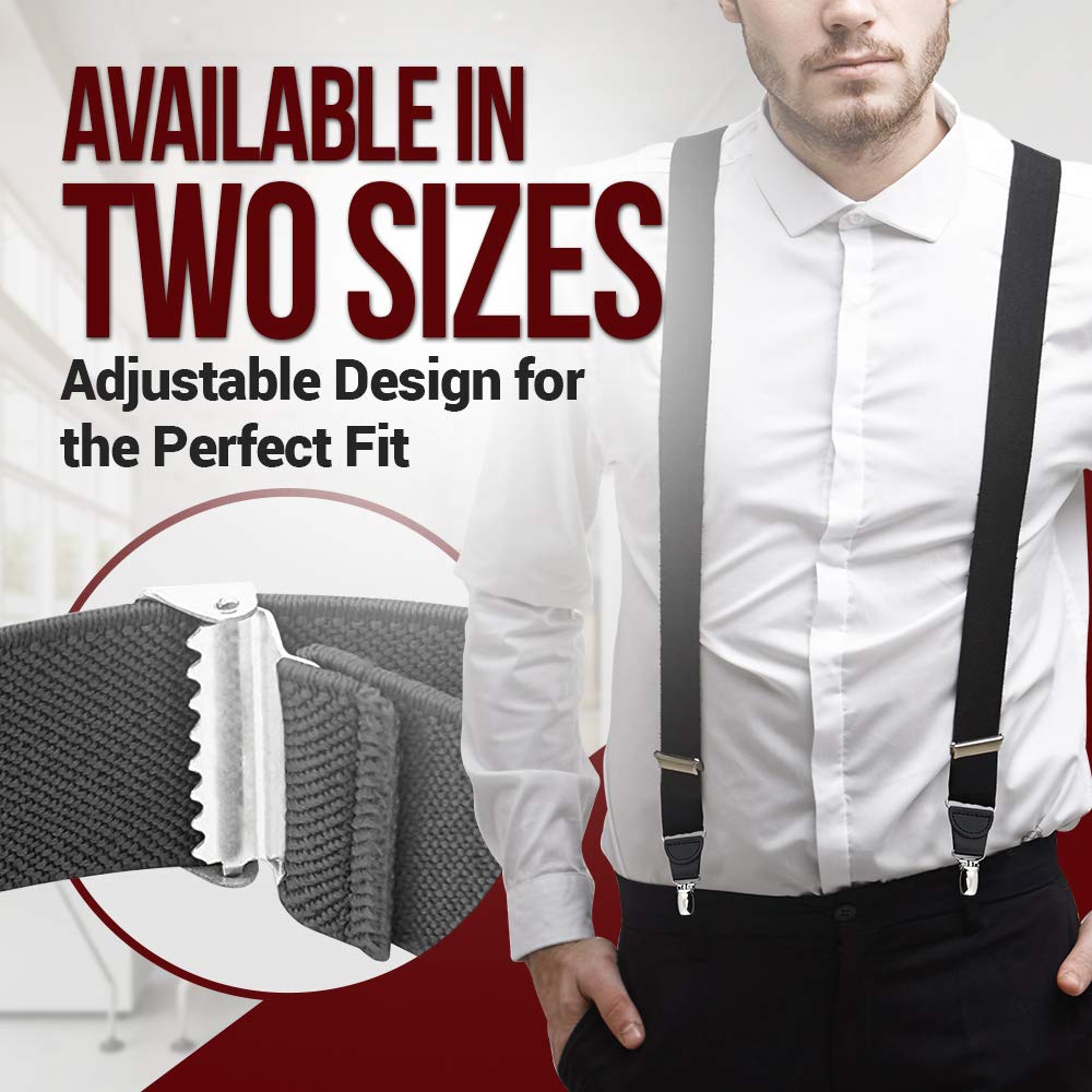 - HIGH-QUALITY CONSTRUCTION: These 1.25-inch wide suspenders are expertly crafted of the highest quality elastic material with a 100% genuine leather crosspatch and drop clips to provide the perfect blend of comfort and durability.